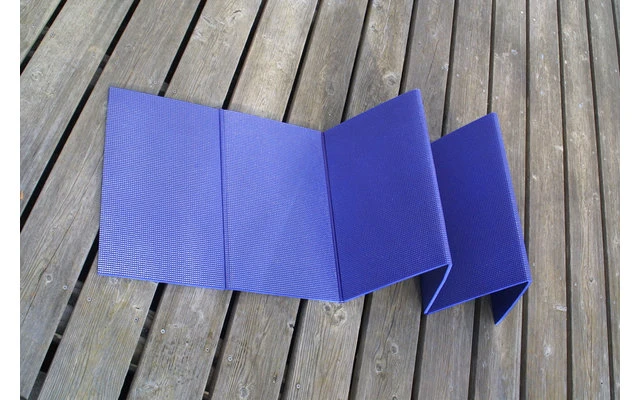 Die Matte wird aufgefaltet und liegt sofort flach. Sie zeigt nicht das störische Aufrollen, wie gerollte Isomatten.