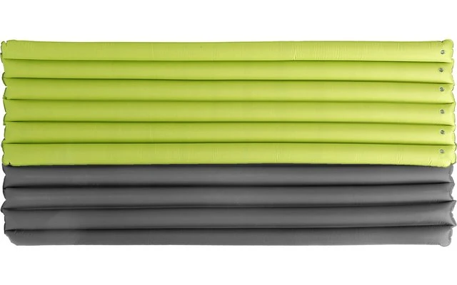 Leichtluftmatratze aus robustem Antirutsch-Polyestergewebe mit sechs Luftkammern. Sie wird inklusive Packsack geliefert.